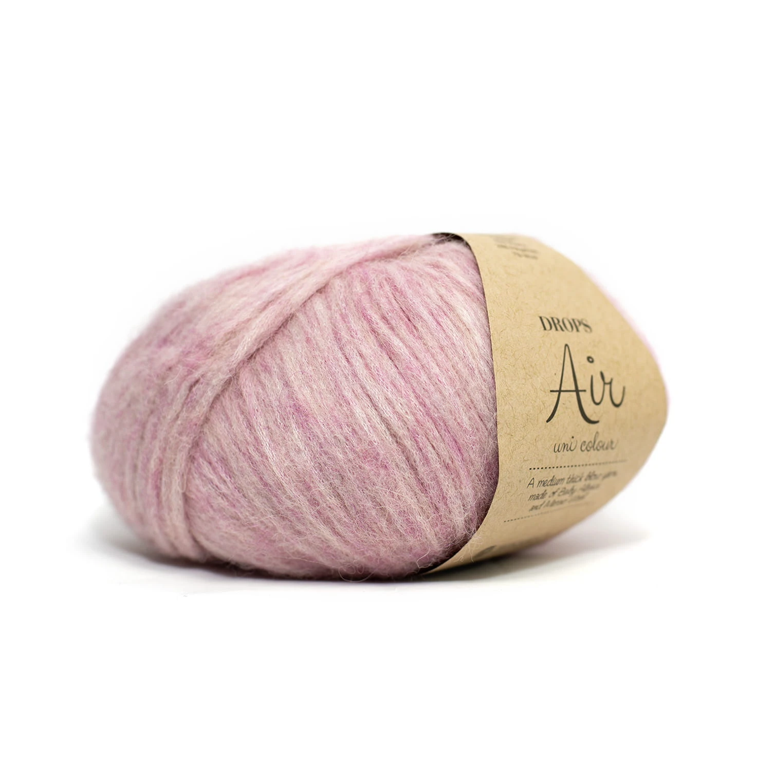 Dropa Air to włóczka „blow yarn”, mieszanka mięciutkiej baby alpaca oraz ciepłej i wygodnej wełny merino. Dzięki swojej specjalnej strukturze zapewnia lekkość dzianin. Włóczka jest doskonała na wszeliego typu szale, kominy, czapki, swetry, wspaniale eksponuje wzory strukturalne i warkocze.
