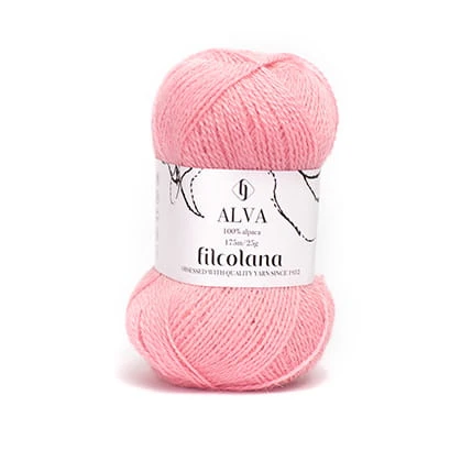 Alva to cienka 2-nitkowa włóczka ze 100% włókien alpaki. Alva jest miękka, ciepła i elastyczna, doskonale komponuje się z innymi rodzajami włóczek. Alva jest dobrą alternatywą dla cienkiego moheru.