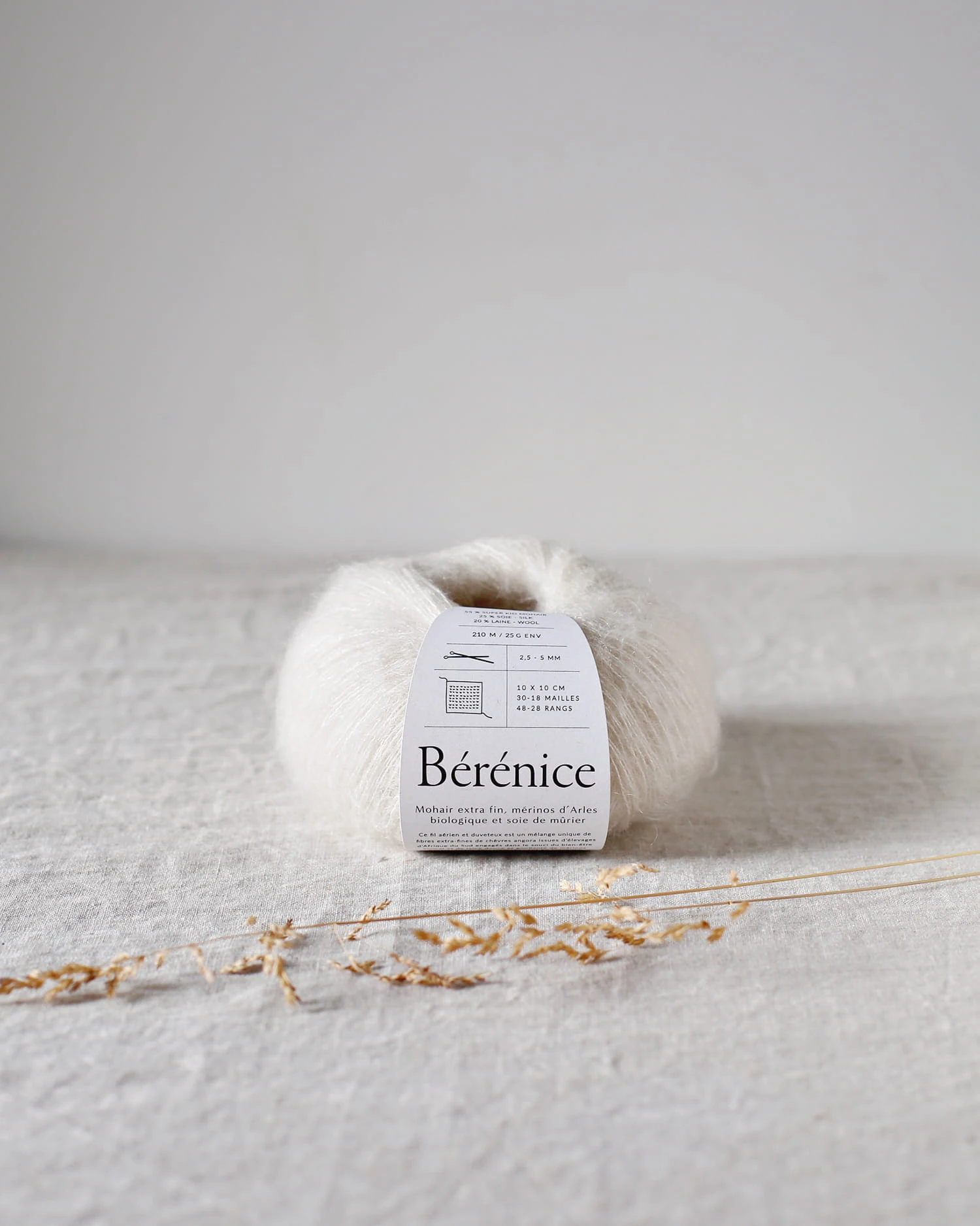 Bérénice to wyjątkowa mieszanka włókien moheru pochodzących z południowoafrykańskich gospodarstw dbających o dobrostan zwierząt oraz miękkiej, pulchnej wełny merynosa d'Arles, które oplatają błyszczącą przędzę jedwabną. Całość jest następnie czesana w celu nadania puszystości.