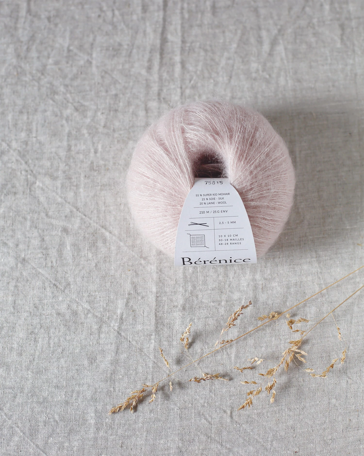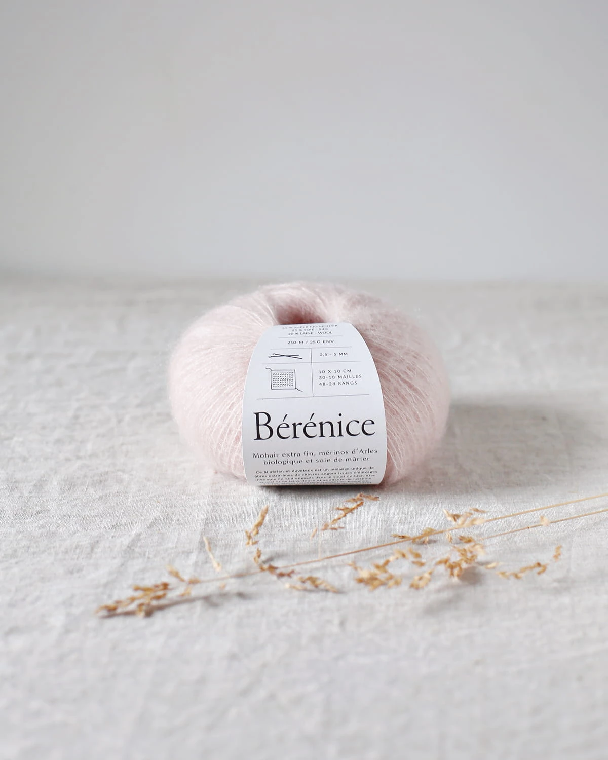 Bérénice to wyjątkowa mieszanka włókien moheru pochodzących z południowoafrykańskich gospodarstw dbających o dobrostan zwierząt oraz miękkiej, pulchnej wełny merynosa d'Arles, które oplatają błyszczącą przędzę jedwabną. Całość jest następnie czesana w celu nadania puszystości.