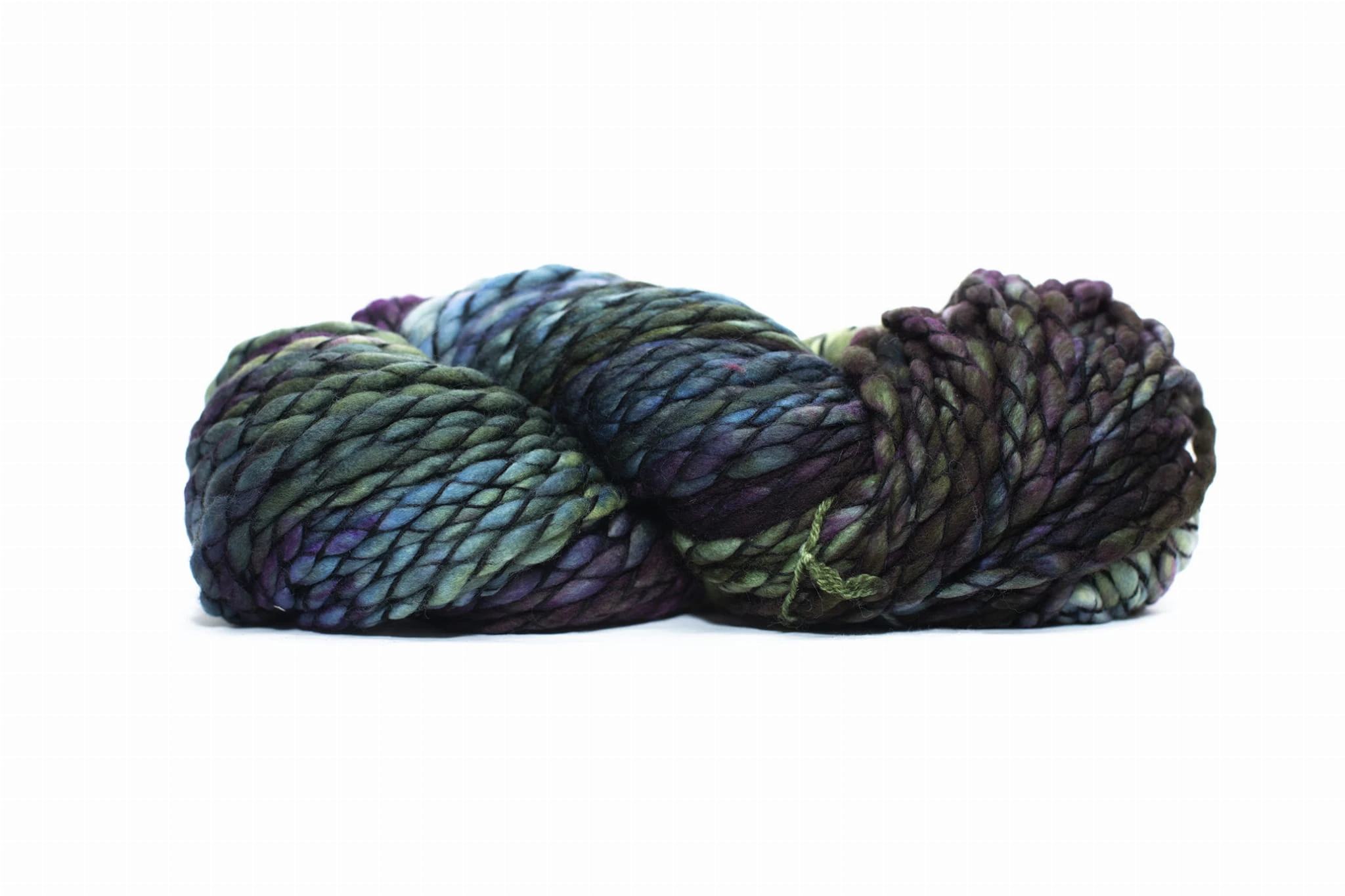 Caracol to ręcznie farbowana, gruba przędza typu singiel opleciona czarną siatką. Doskonała na ciepłe czapki, kominy, oraz inne grube dzianiny.
