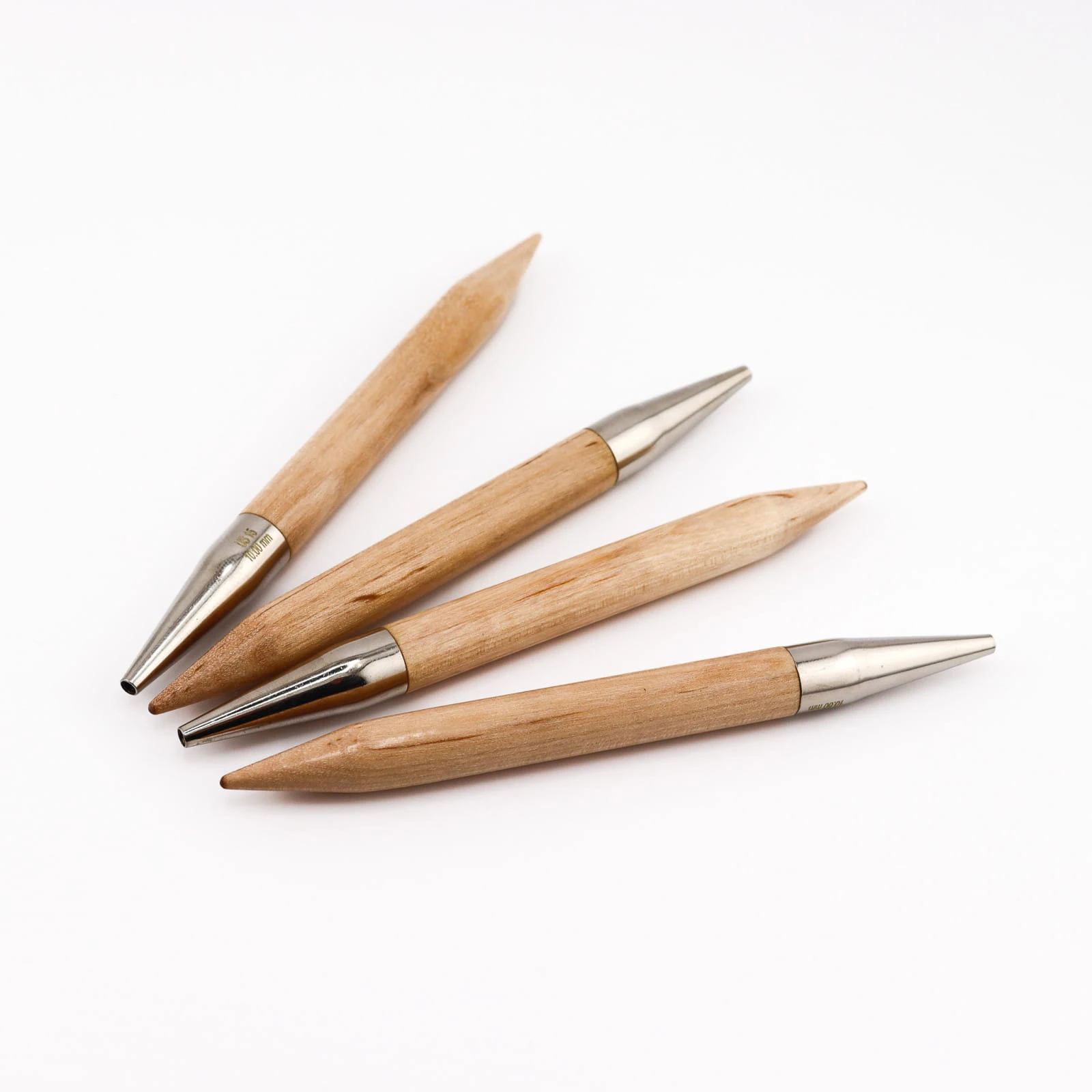 Drewniane druty wymienne dł. 12,5 cm. Wykonane z drewna brzozowego, , gładkie, lakierowane, w naturalnym kolorze. Pasują do żyłek Lykke i KnitPro o długości 60, 80, 100, 120 i 150 cm.