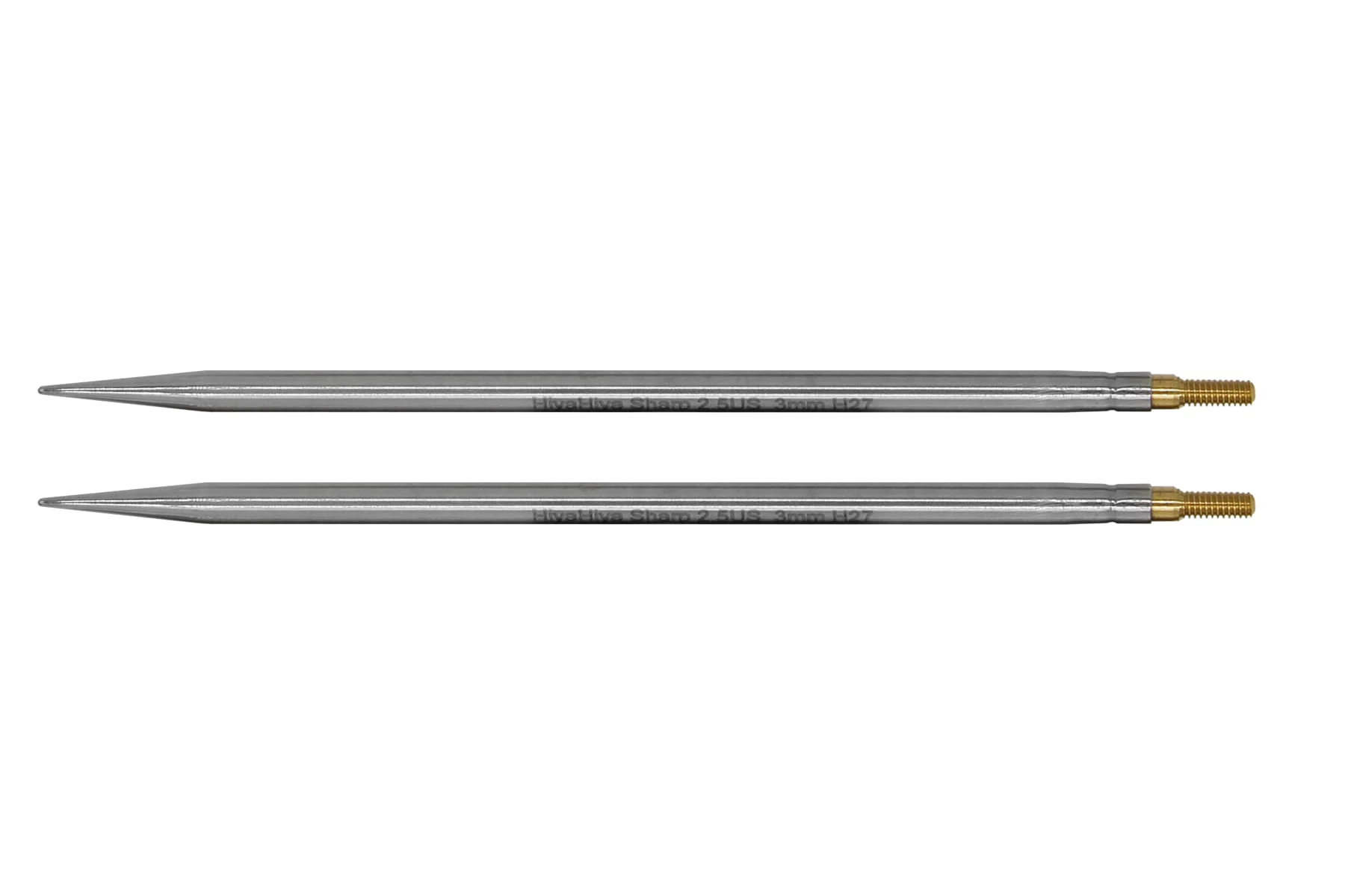 Druty stalowe, nie zawierają niklu, z ostrymi końcówkami. Są bardzo gładkie i mają nadrukowany rozmiar. Występują w dwóch wariantach długości - 10 i 12,5 cm. Krótsze polecane są do krótkich żyłek, np. do robienia czapek i kominów i wszędzie tam gdzie dziergamy na okrągło robótkę o niewielkiej średnicy.