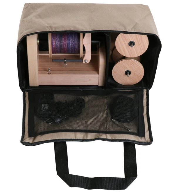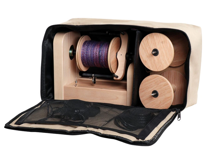 W zestawie znajduje się torba z paskiem na ramię, trzy duże szpule, 'Lazy Kate' z naprężaczem, pedał nożny do włączania / wyłączania.