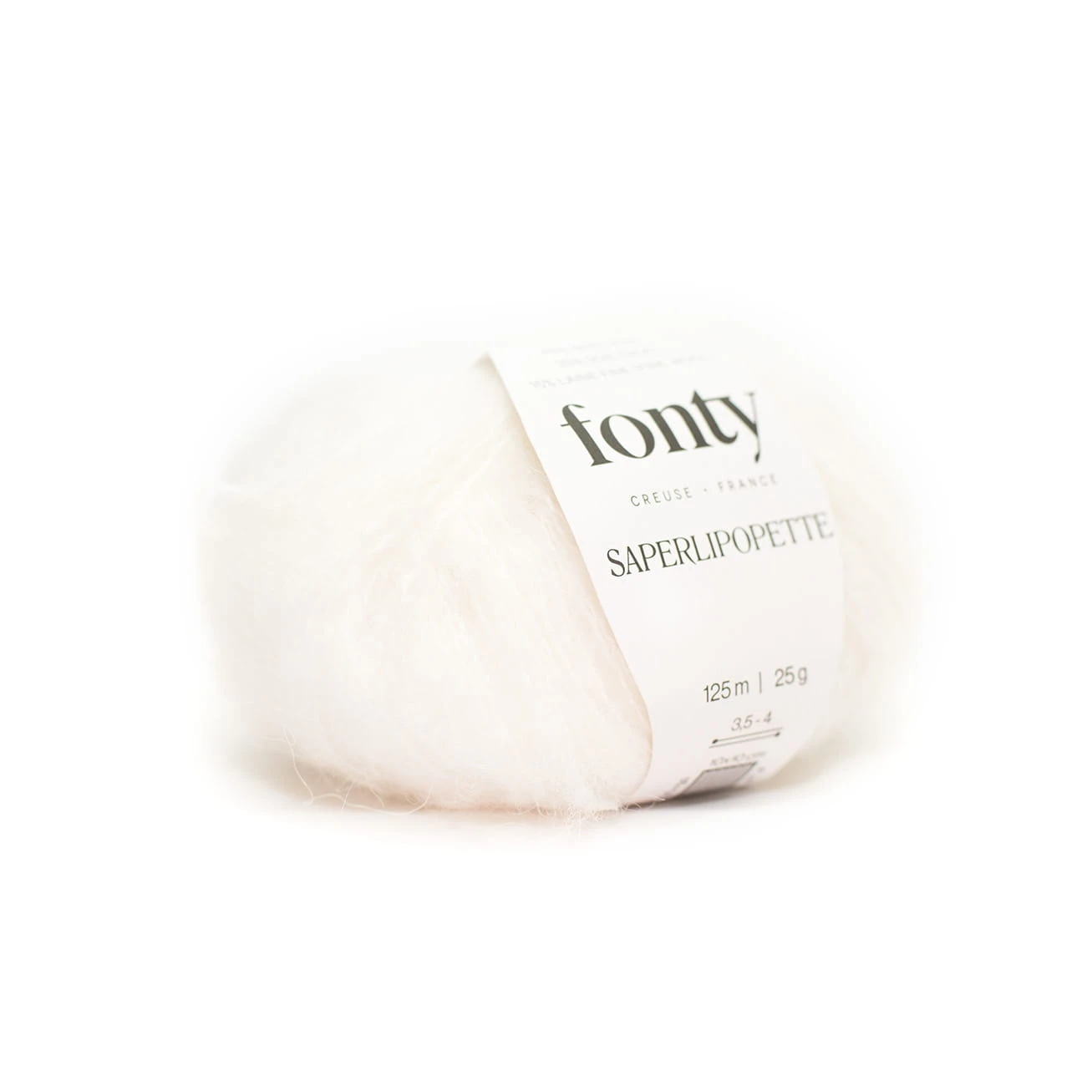 SAPERLIPOPETTE to puszysta, delikatna włóczka, będąca alternatywą dla włóczek moherowych. Jest to mieszanka 65% alpaki suri dla puszystości, 20% jedwabiu dla wytrzymałości i 15% wełny merino dla elstyczności. SAPERLIPOPETTE można dziergać pojedynczo, podwójnie lub w połączeniu z inną włóczką.