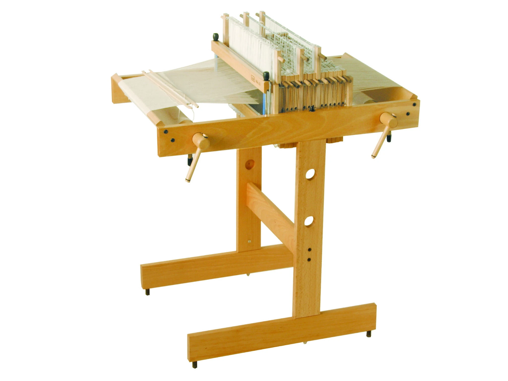 Krosno stołowe Klik o szerokości tkania 40 cm i 4 nicielnicach. Krosno posiada możliwość rozszerzenia do 16 nicielnic. Sterowanie odbywa się poprzez ręczne podnoszenie i opuszczanie podobnie jak w krosnach typu rigid heddle. W zestawie znajdują się 4 nicielnice, płocha (40/10), 200 strun texsolv, 16 przekładek, 2 czółenka płaskie.