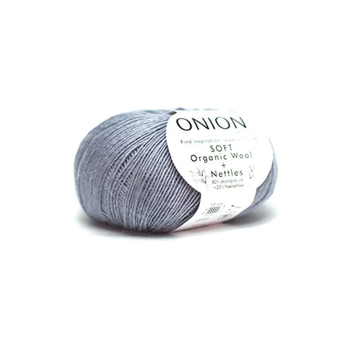 ONION Soft Organic Wool+Nettles to supermiękka i cudownie lekka, jednonitkowa włóczka z organicznej wełny z dodatkiem włókien pokrzywy wolnych od pestycydów. Włókna pokrzywy sprawiają, że włóczka jest bardziej „oddychająca”, a dzianina wytrzymała.
