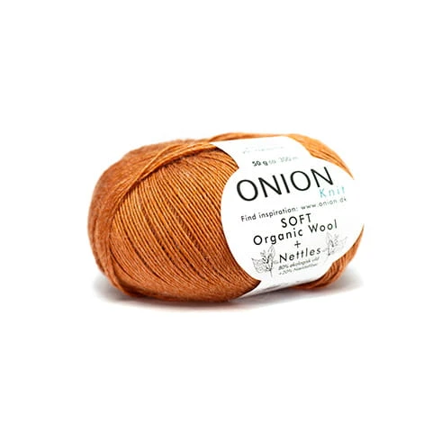 ONION Soft Organic Wool+Nettles to supermiękka i cudownie lekka, jednonitkowa włóczka z organicznej wełny z dodatkiem włókien pokrzywy wolnych od pestycydów. Włókna pokrzywy sprawiają, że włóczka jest bardziej „oddychająca”, a dzianina wytrzymała.