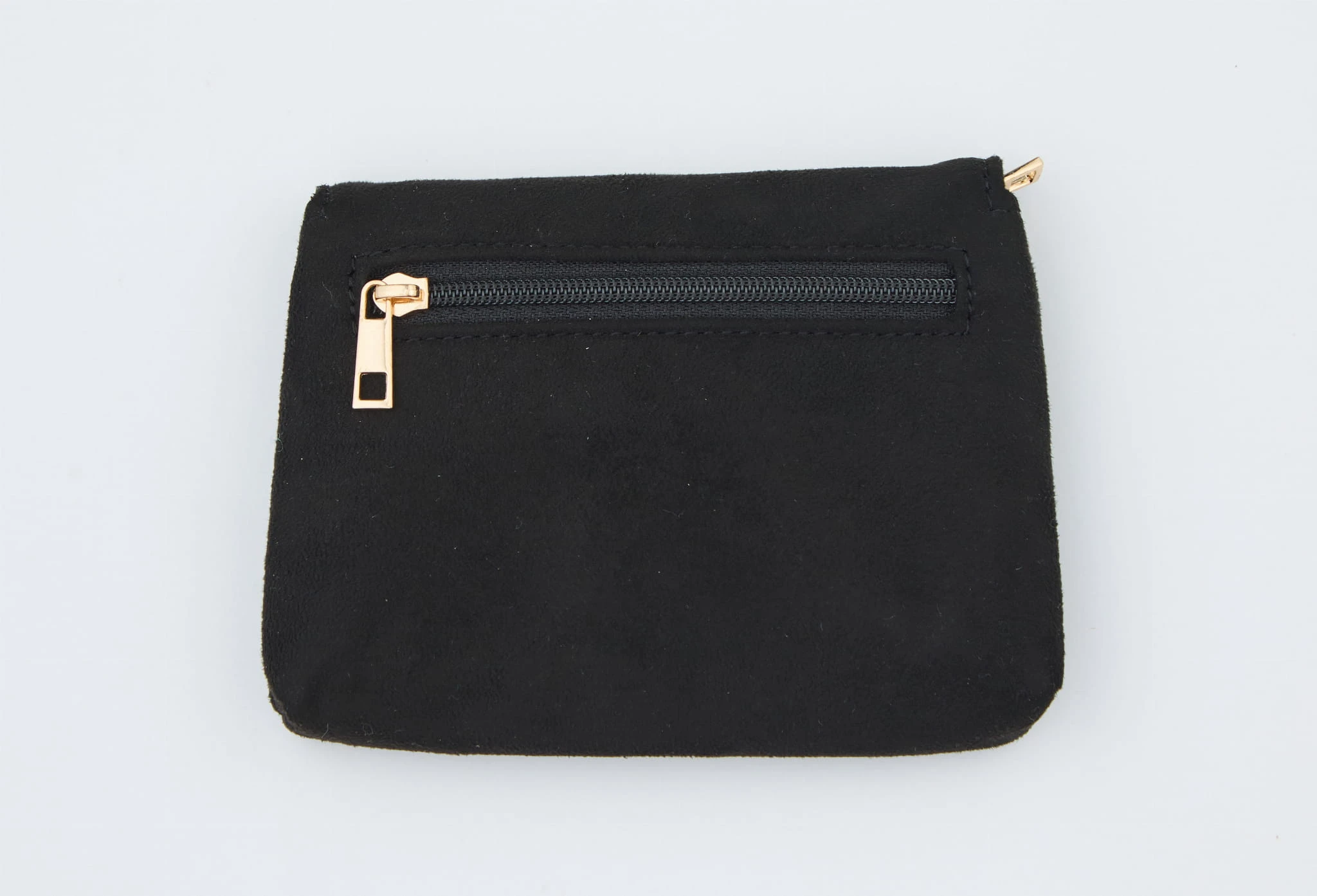 Saszetka na akcesoria, pomieści małe nożyczki, miarkę markery, stopery i inne przydasie. Całość wykonana z tkaniny imitującej zamsz.