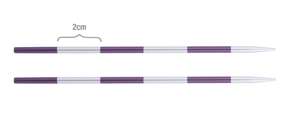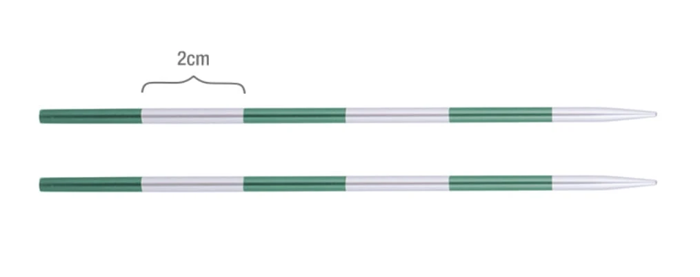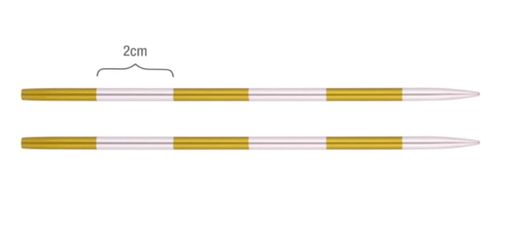 Druty długości 8 cm przystosowane do krótkich żyłek, np. do dziergania czapek na okrągło.