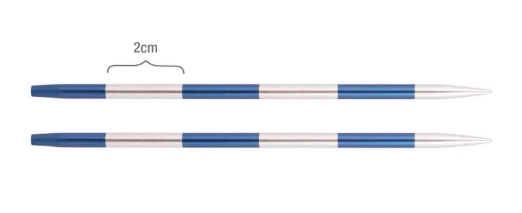 Druty długości 8 cm przystosowane do krótkich żyłek, np. do dziergania czapek na okrągło.