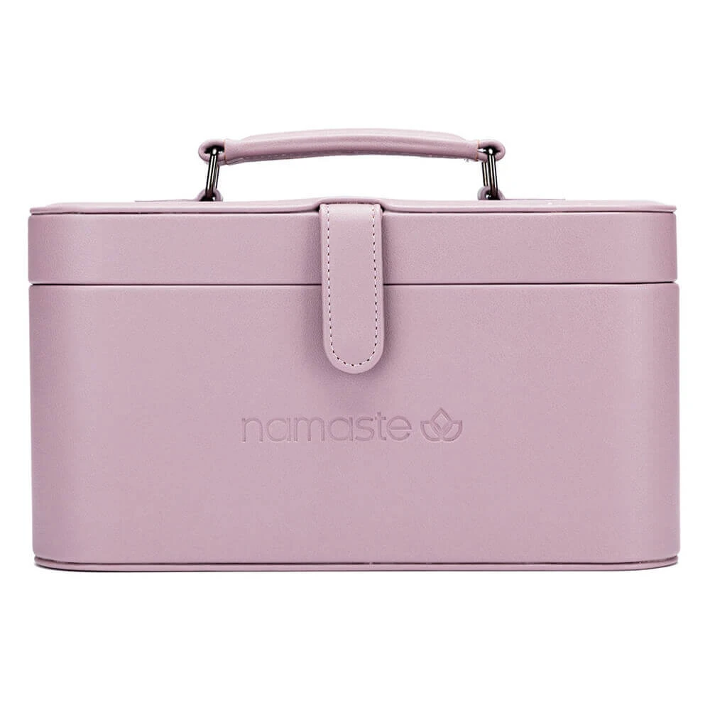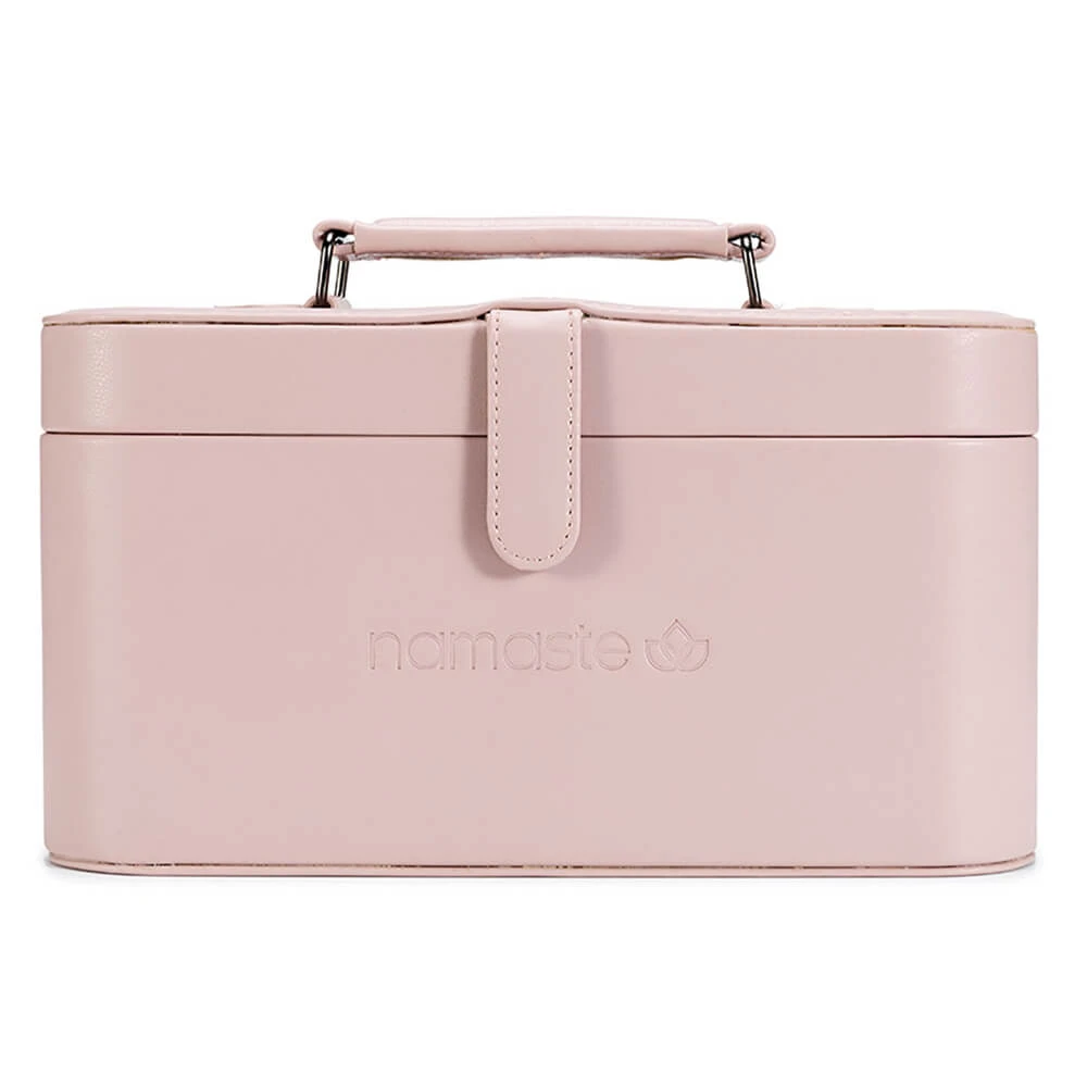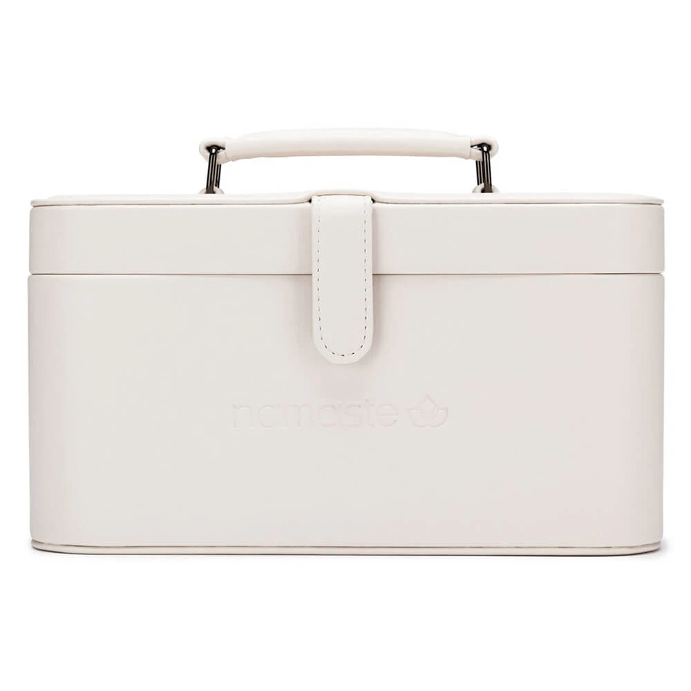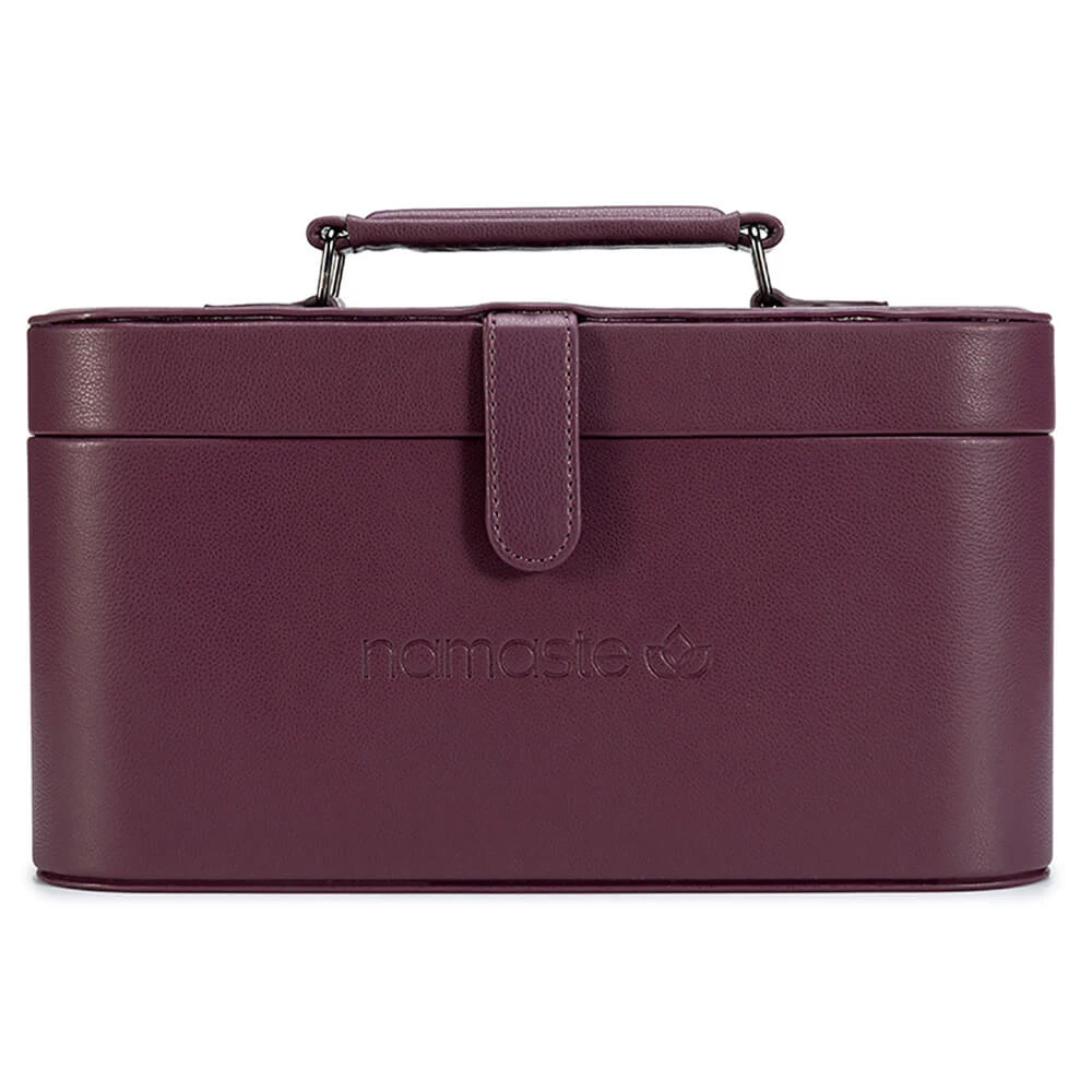Walizeczka Namaste w stylu vintage pokryta jest wegańską skórą, wyposażona w podajnik przędzy w kształcie litery U, a także powierzchnię magnetyczną w pokrywie do wygodnego przechowywania drutów, igieł, markerów. Wymiary walizeczki: 30,5 x 16,5 x 15,2 cm. Zawiera woreczek Oh Snap do przechowywania akcesoriów.